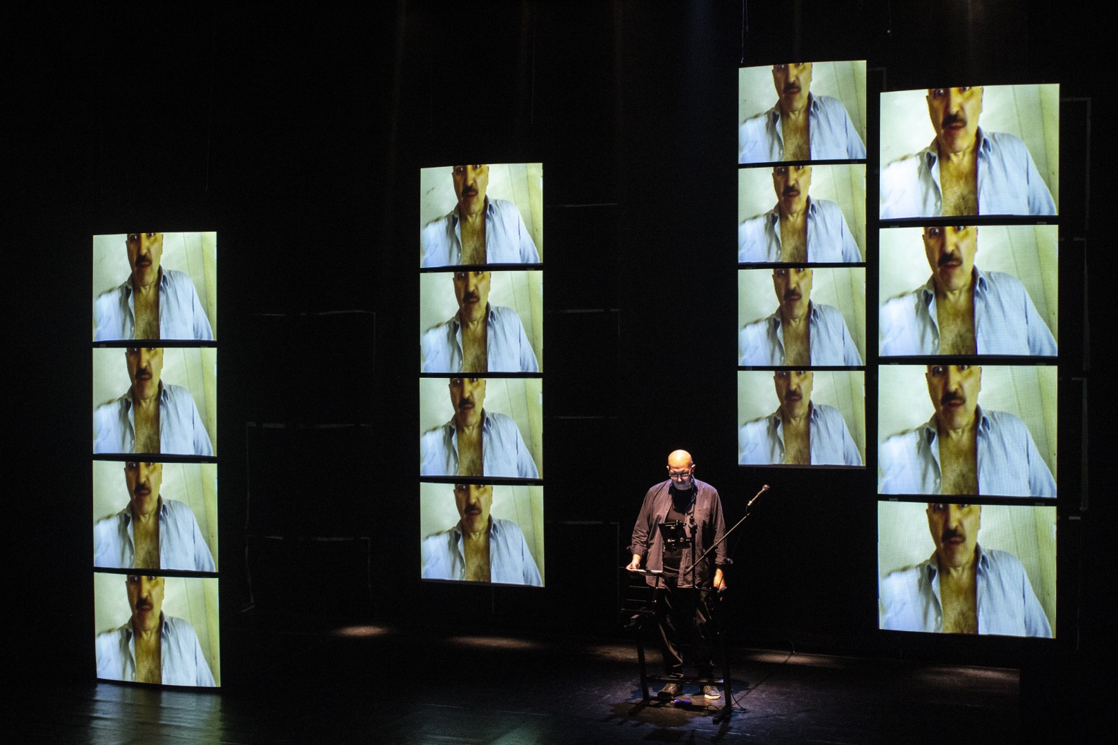 The Wall is a multifocal and polysemantic show, incorporating the elements of an epic song devoid of heroes into the form of a multimedia live set.
